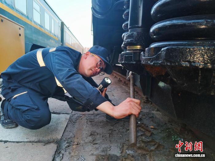 图为郑州车辆段检车员对于车停配件停止检验。 弛家瑞 摄